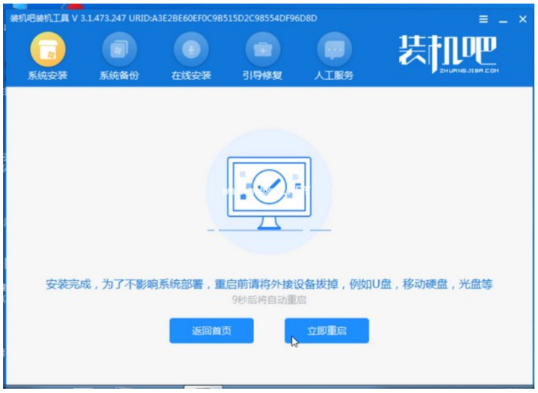 6、系統(tǒng)安裝完成之后,再次點擊立即重啟電腦。