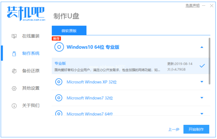 2、選擇我們需要安裝的系統(tǒng),點擊開始制作。