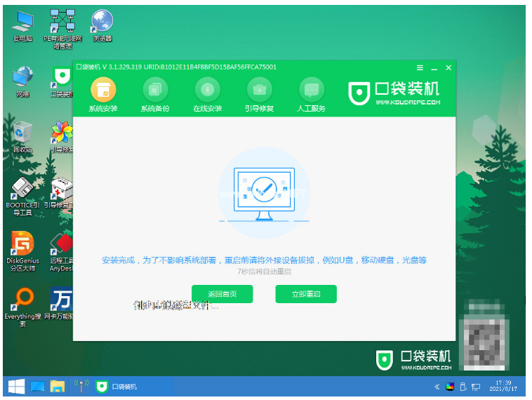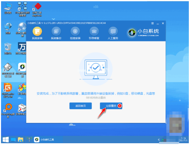 6、系統(tǒng)安裝完成之后,再次點擊立即重啟電腦按鈕。