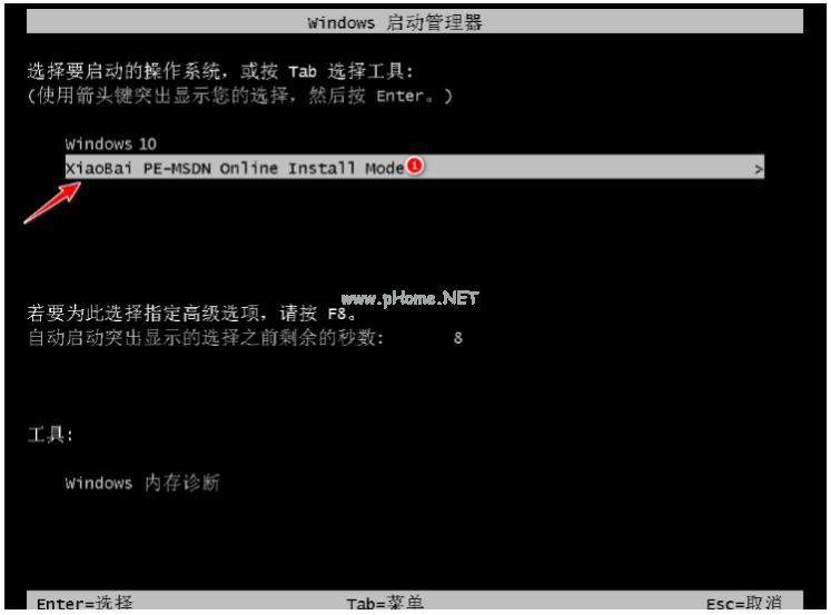 7、來到這個界面我們選擇新安裝好的windows10系統(tǒng),直至進入win10系統(tǒng)即可。