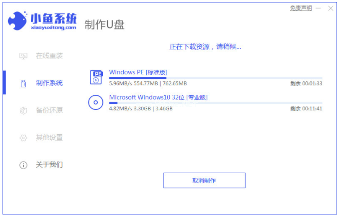 1.準備好的u盤插到電腦接口當(dāng)中,下載安裝“小魚一鍵重裝系統(tǒng)”工具并打開,點擊制作系統(tǒng)。