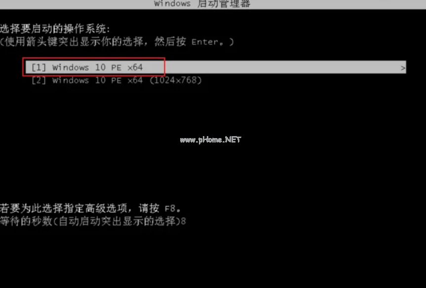 8、進(jìn)入系統(tǒng)引導(dǎo)選項(xiàng)界面,選擇Windows 10 PE進(jìn)入系統(tǒng)