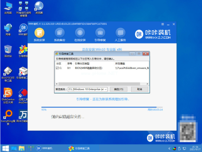 7、等待系統(tǒng)自動(dòng)安裝,引導(dǎo)修復(fù)工具頁(yè)面在C盤前打勾,點(diǎn)擊確定。
