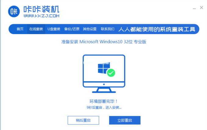 5、等待系統(tǒng)部署環(huán)境,部署完畢后點(diǎn)擊立即重啟。