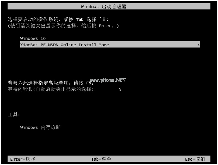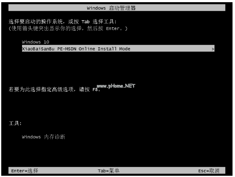 4、重啟電腦后進(jìn)入選擇菜單的界面,選擇“XiaoBai PE-MSDN Online Install Mode”進(jìn)入系統(tǒng)。