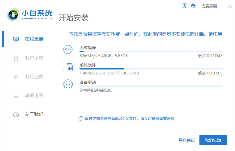 2.裝機(jī)工具會開始下載鏡像文件和驅(qū)動,請耐心等待下載完成。