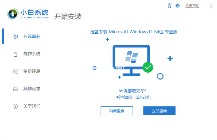 3、當(dāng)裝機(jī)軟件顯示環(huán)境部署完畢之后點(diǎn)擊立即重啟。