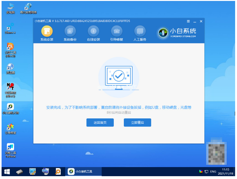6.系統(tǒng)安裝完成后,點(diǎn)擊立即重啟。