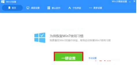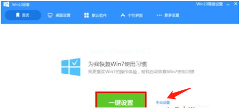 4:點擊進入后,幾秒鐘后會跳出下圖所示頁面。我們點擊“一鍵設置”后就可以切換成win10了。