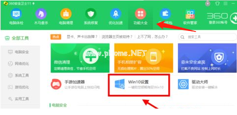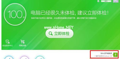 1、打開360安全衛(wèi)士,點擊一鍵升級到win10;