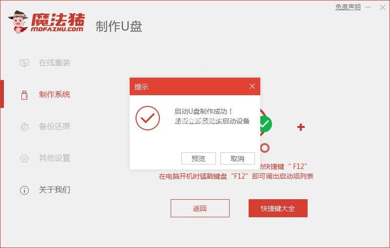 5、等待U盤(pán)啟動(dòng)盤(pán)制作完成,即可進(jìn)行系統(tǒng)的重裝。