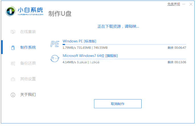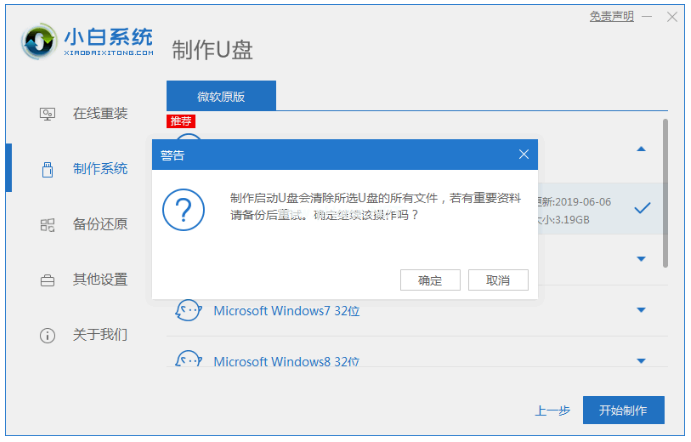2、選擇windows7系統(tǒng)之后,點(diǎn)擊開(kāi)始制作。