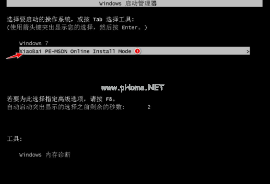 4、我們進入windows啟動管理器界面,選擇第二個進入電腦的pe系統。