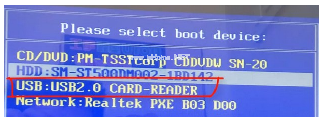 2、進(jìn)入 Bios 界面又或者快速引導(dǎo)菜單選擇U盤選項(xiàng);