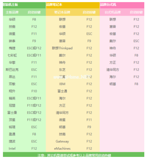 5、重啟電腦,開(kāi)機(jī)時(shí)按熱鍵進(jìn)入 Bios 或者快速引導(dǎo)菜單的界面,進(jìn)入后使用方向鍵選擇U盤選項(xiàng)。U盤啟動(dòng)快捷鍵一般為 F12,有些可能是 Esc、Del、F2 之類的。具體大家可以參考下圖。