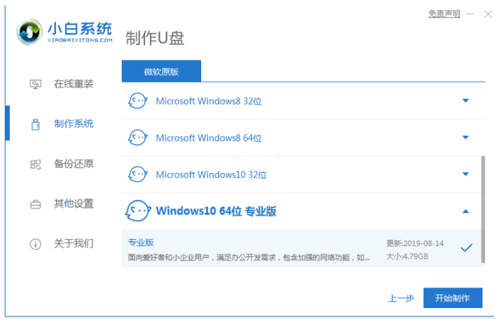 2、選擇win7系統(tǒng)開(kāi)始制作;