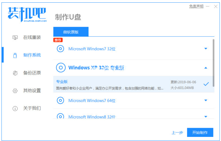 2、選擇本次需要安裝的系統(tǒng),點擊開始制作。