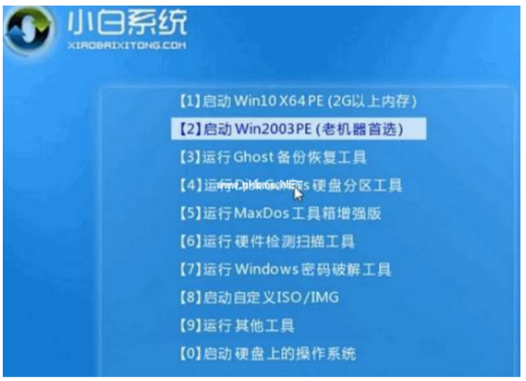4、電腦重啟過程中選擇U盤啟動,在進入小白系統(tǒng)PE界面時,選擇第一項“啟動win10 x64PE(2G以上內(nèi)存進入)”進入電腦系統(tǒng)。