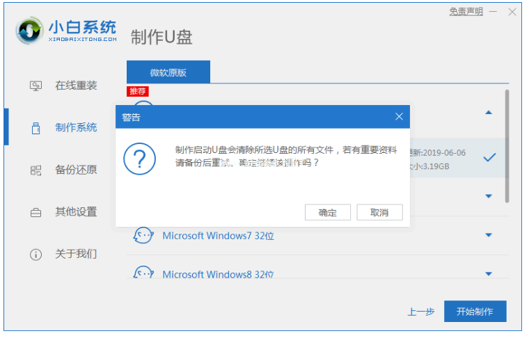 3、這時會彈出格式化U盤操作,在確定保存好重要數(shù)據(jù)以后,點擊“確認”,耐心等待U盤制作完成以后,點擊重啟電腦。