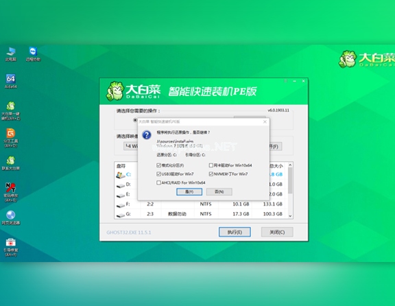 方法一:使用大白菜U盤啟動工具完成U盤安裝win7系統(tǒng)