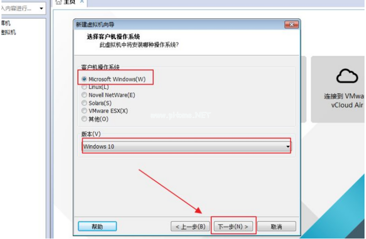 4、客戶端系統(tǒng)選擇Microsoft windows,選擇windows10,點(diǎn)下一步。