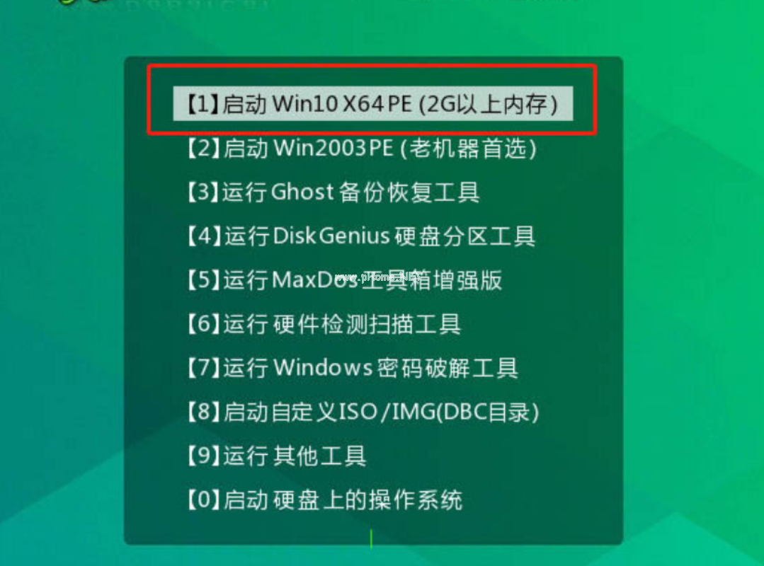 2、選擇【1】Win10X64PE(2G以上內(nèi)存),回車進入大白菜PE桌面。