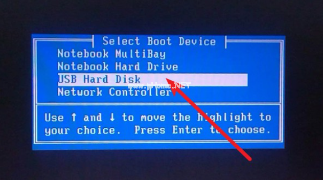 7、將u盤(pán)插入要安裝系統(tǒng)的電腦,開(kāi)機(jī)按啟動(dòng)熱鍵進(jìn)入系統(tǒng),選擇usb選項(xiàng),回車(chē)。