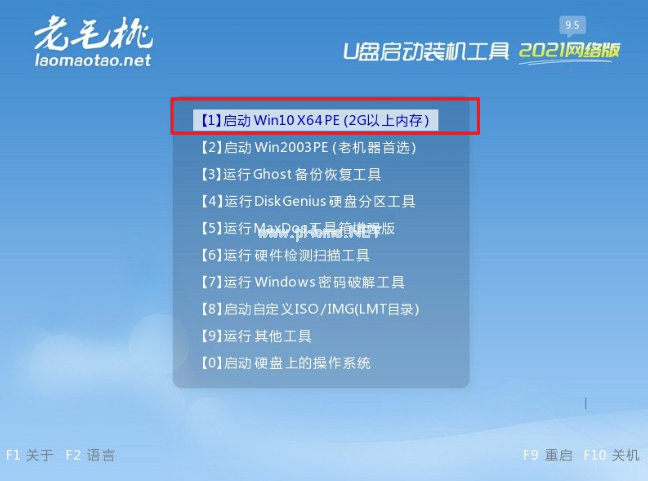 5、進(jìn)入系統(tǒng)啟動(dòng)設(shè)置頁(yè)面后,使用上下方向鍵選擇u盤(pán)選項(xiàng),最后回車(chē)就可以進(jìn)入老毛桃PE主菜單。