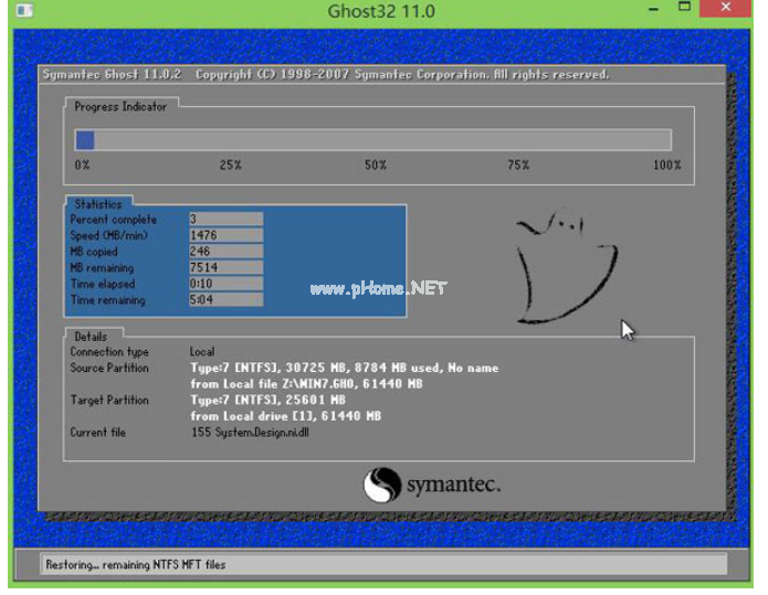 4、然后系統(tǒng)開始自動恢復(fù)電腦,正在裝機(jī)過程中,等待裝機(jī)完成自動重啟電腦。