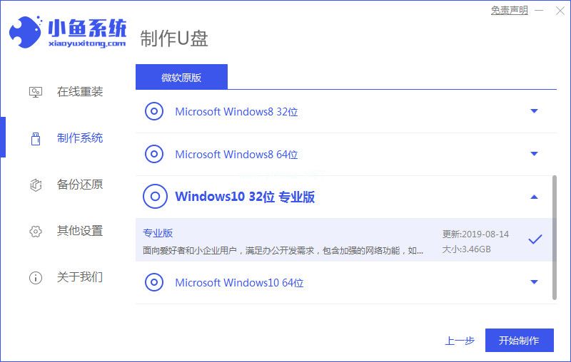 2、接著選擇win10,選擇點(diǎn)擊開(kāi)始制作。