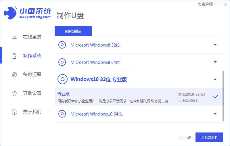 2、選擇要安裝的系統(tǒng)版本,點(diǎn)擊開始制作。