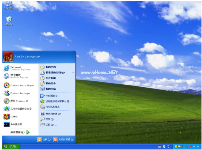 3、最后直到電腦進(jìn)入到新的xp系統(tǒng)桌面即代表u盤安裝xp成功。