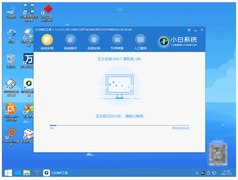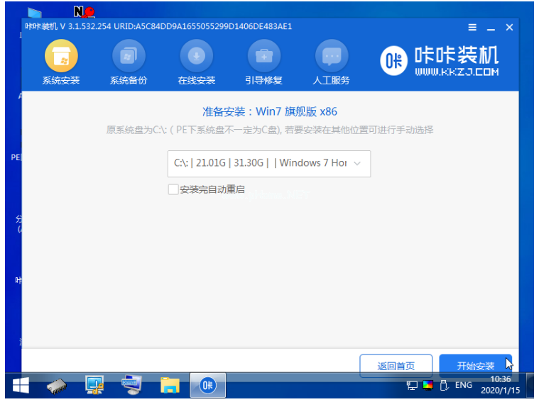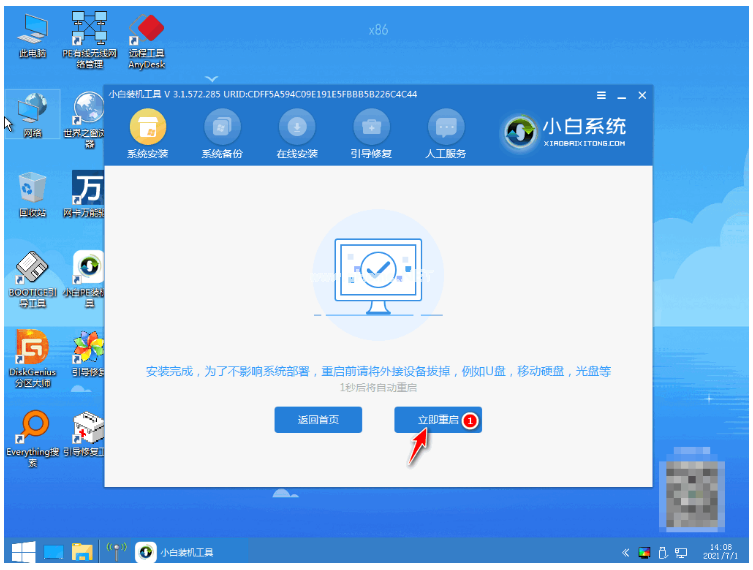 2、制作好之后,進(jìn)入pe系統(tǒng)開始安裝,重啟電腦代表電腦可以正常使用。