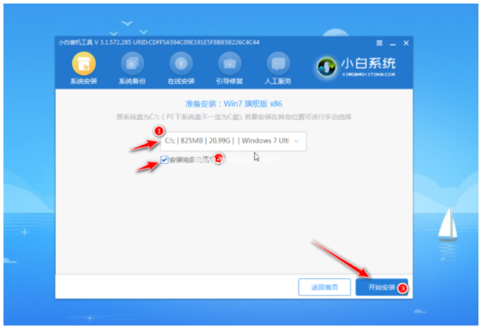 6、正常情況下默認(rèn)建議將系統(tǒng)安裝到系統(tǒng)盤c盤,點(diǎn)擊開(kāi)始安裝即可。