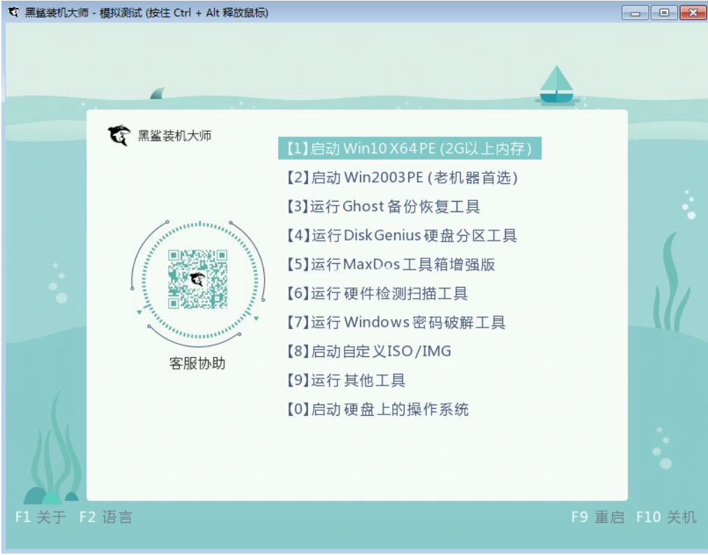 6.如果電腦中出現(xiàn)黑鯊PE菜單選擇項的測試窗口,證明啟動U盤制作完成,直接關閉該測試窗口。