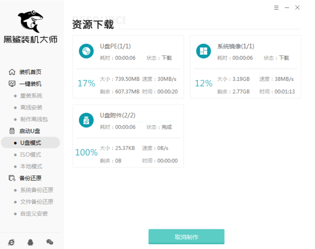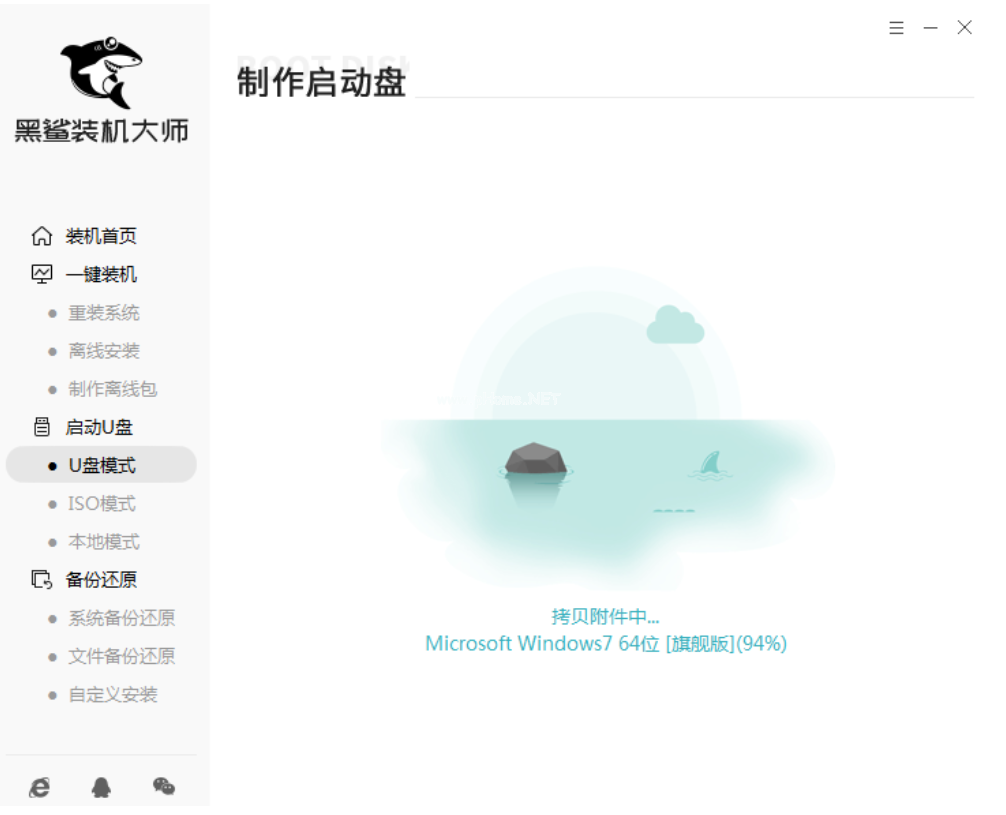 4.Win7系統(tǒng)文件下載完成后,黑鯊開始將系統(tǒng)文件寫入U盤。