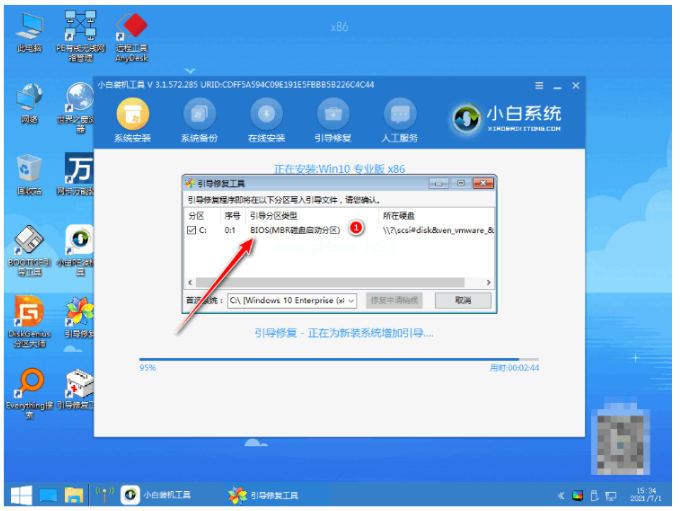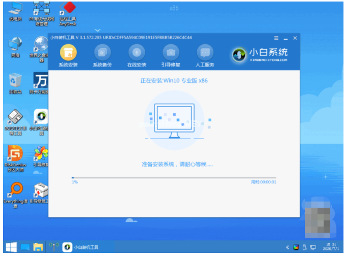 5、雙擊打開小白裝機(jī)工具安裝系統(tǒng)到c盤,請(qǐng)大家耐心等待軟件自動(dòng)安裝,完成后就選擇重啟。