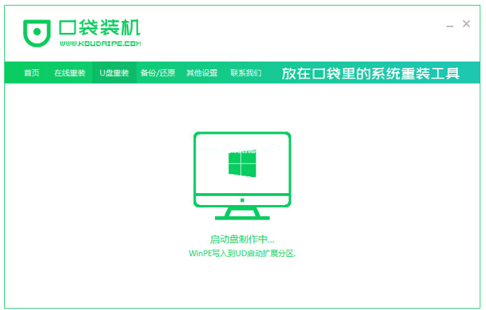 1、打開口袋裝機(jī)工具軟件,制作制作u盤啟動(dòng)盤;