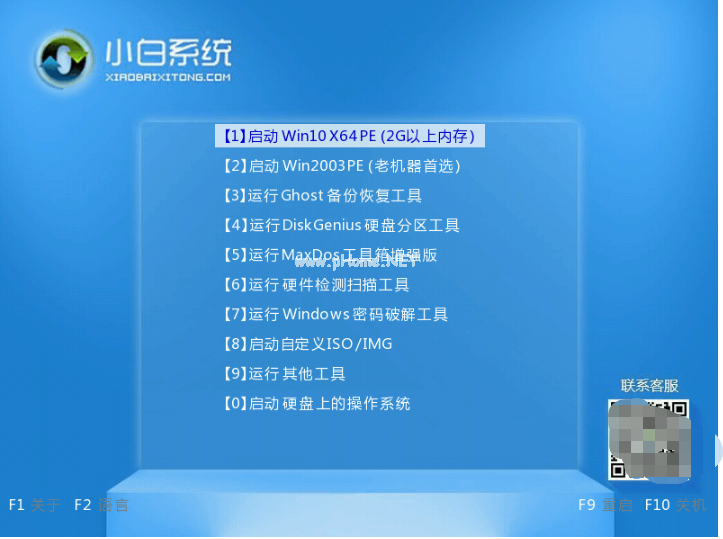 9、出現(xiàn)的小白系統(tǒng)界面,我們選擇第一項(xiàng)啟動(dòng)win10x64位PE,然后回車進(jìn)去。