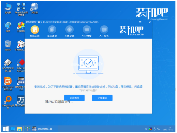 7、系統(tǒng)安裝完成之后,我們選擇立即重啟。