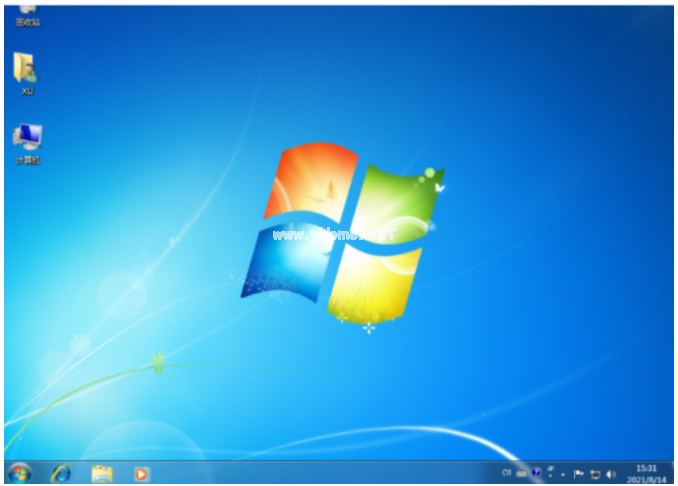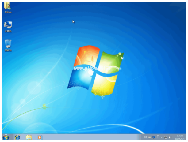 6.等待安裝完成后,選擇重啟電腦,進(jìn)入系統(tǒng)桌面即說明電腦u盤系統(tǒng)重裝win7成功。