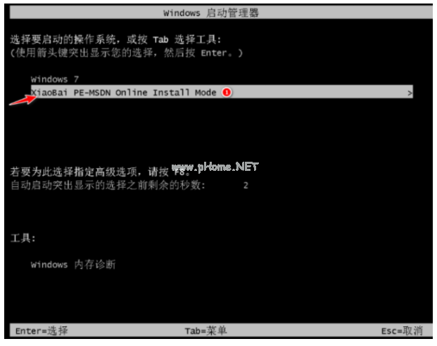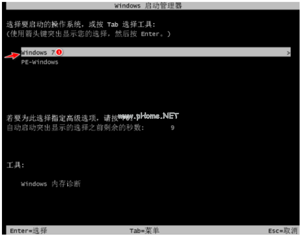 7、重啟電腦之后,選擇需要安裝的Win7系統(tǒng)進(jìn)入。