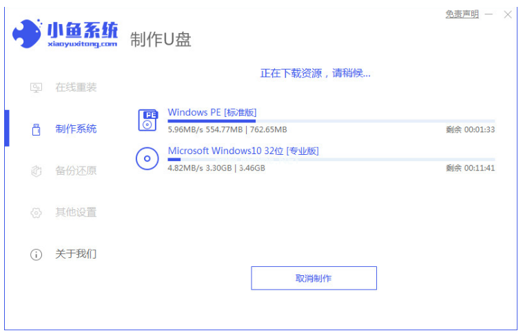 1、我們首先下載安裝小魚一鍵重裝系統(tǒng)軟件并打開,然后選擇制作U盤,再鼠標(biāo)點擊開始制作。