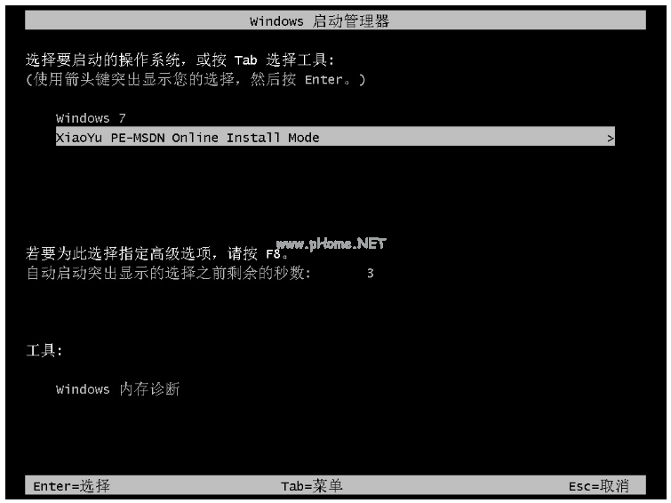 5、我們將u盤插入要安裝系統(tǒng)的電腦,然后按熱鍵進入啟動管理器的界面,接著選擇第二項按回車鍵進入pe系統(tǒng)界面。