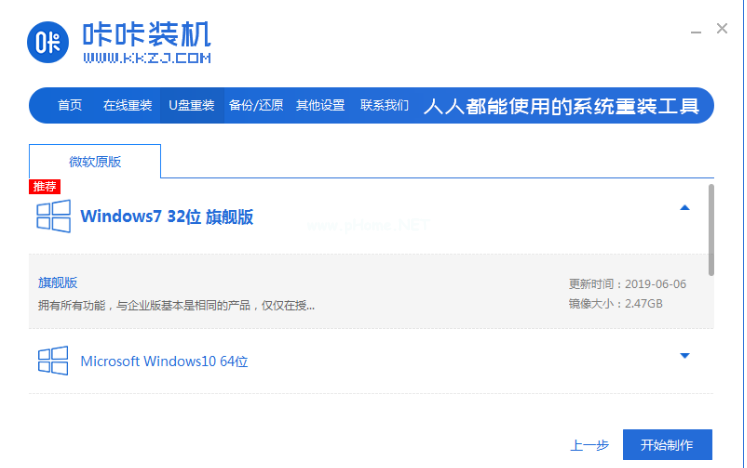 2、點擊開始制作安裝的系統(tǒng)版本。