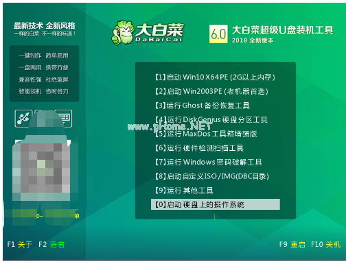 2、進(jìn)入大白菜主菜單后可以選擇“啟動Win10 X64 PE(2G以上內(nèi)存)”,按回車進(jìn)入PE系統(tǒng)界面。