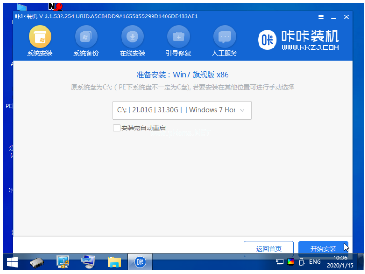 3、打開(kāi)咔咔裝機(jī)工具,安裝win7系統(tǒng);