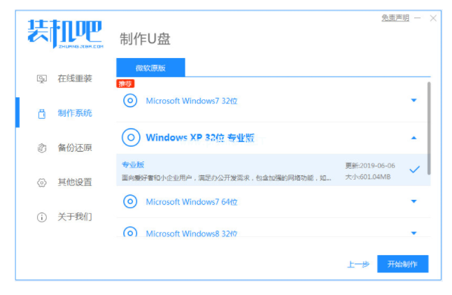 2、選擇要安裝的系統(tǒng)版本,點(diǎn)擊開始制作。