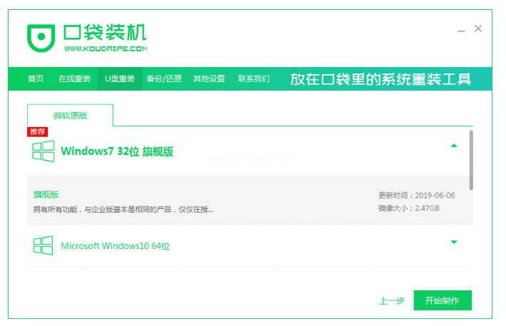 2、然后選擇想重裝的系統(tǒng)鏡像,點(diǎn)擊開始制作。