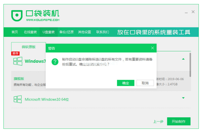 3、隨后確定已提前備份U盤數(shù)據(jù)后,點(diǎn)擊確定。